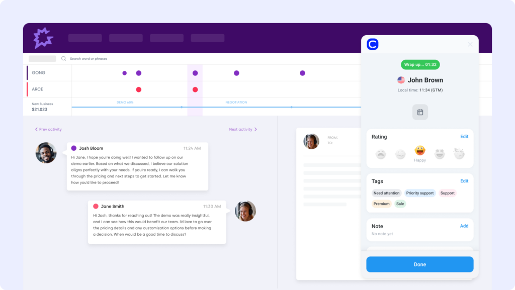 Break down data silos and sync calls with deals, contacts, and CRM records. This Gong CTI setup creates a true Call Center for Gong, keeping your team aligned and every customer touchpoint connected.