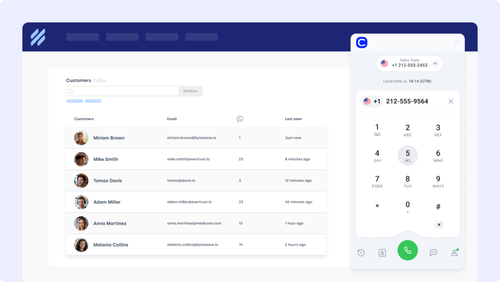 שפר את היעילות עם פונקציונליות קליק להתקשר ישירות בתוך HelpScout. התחל שיחות בלחיצה אחת מכרטיסי לקוחות, ביטול הצורך לעבור בין פלטפורמות ולאפשר לסוכנים לפתור בעיות מהר יותר.