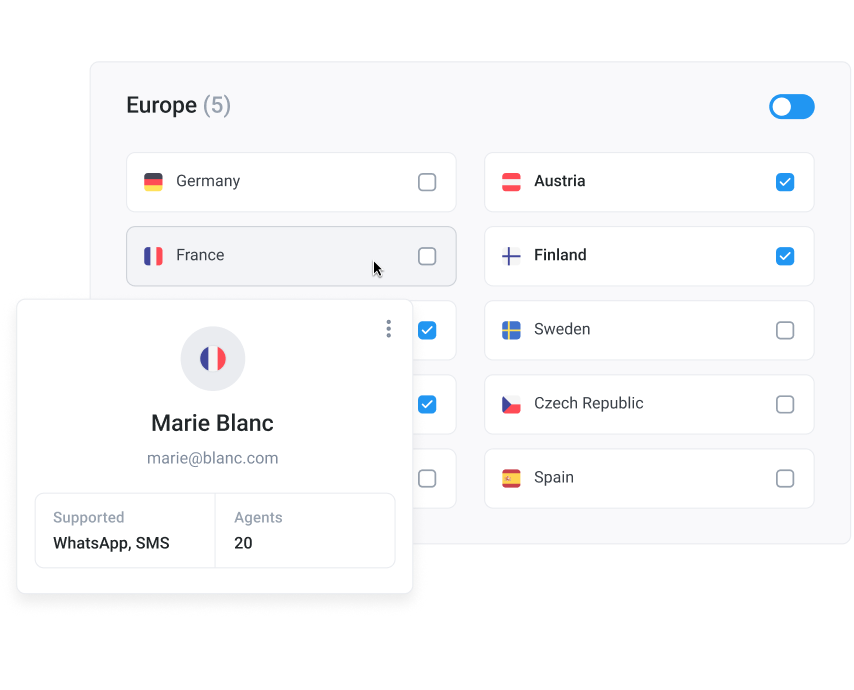 Expand your global reach and dominate local markets with international phone numbers in 160+ countries. Get the desired foreign or local virtual number, build customer trust, and ramp up answer rates. Boost international calls and make every call count.