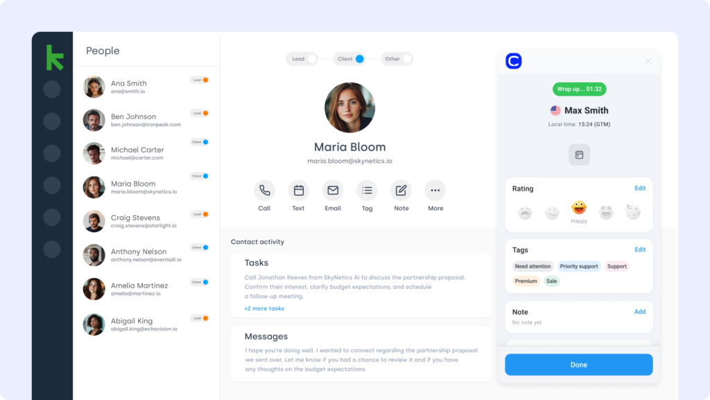 A powerful CRM and marketing automation platform designed for small businesses, Keap helps users manage leads, automate workflows, and track sales performance. With CloudTalk’s Keap VoIP Integration, businesses can enhance their communication, improve efficiency, and drive growth effortlessly.