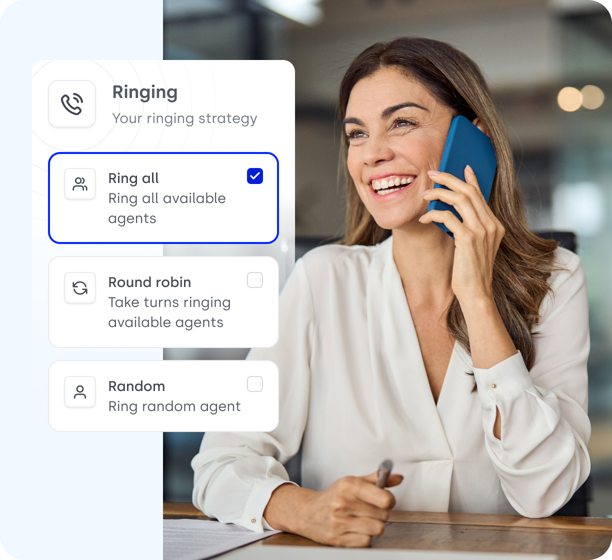 This ensures that calls are answered by the first available and best-suited agent, reducing wait times and improving team responsiveness. You can adapt the ring strategy to fit your team’s workflow, making your call distribution more efficient and customer-focused.