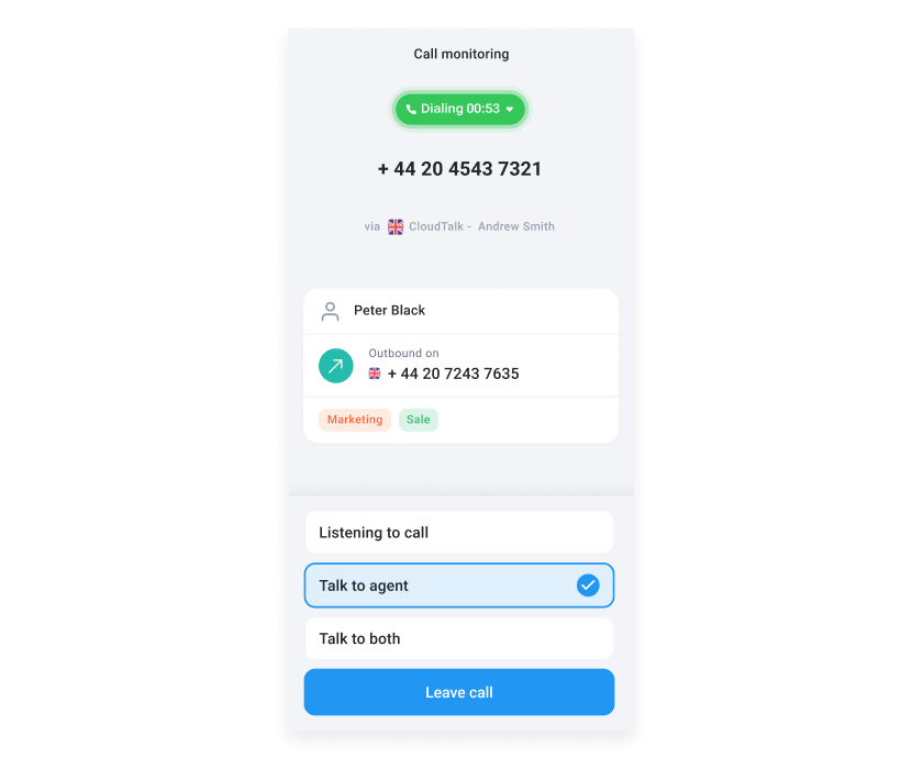 Alăturați-vă și părăsiți apelurile telefonice în liniște cu doar câteva clicuri și evaluați performanța agentului.