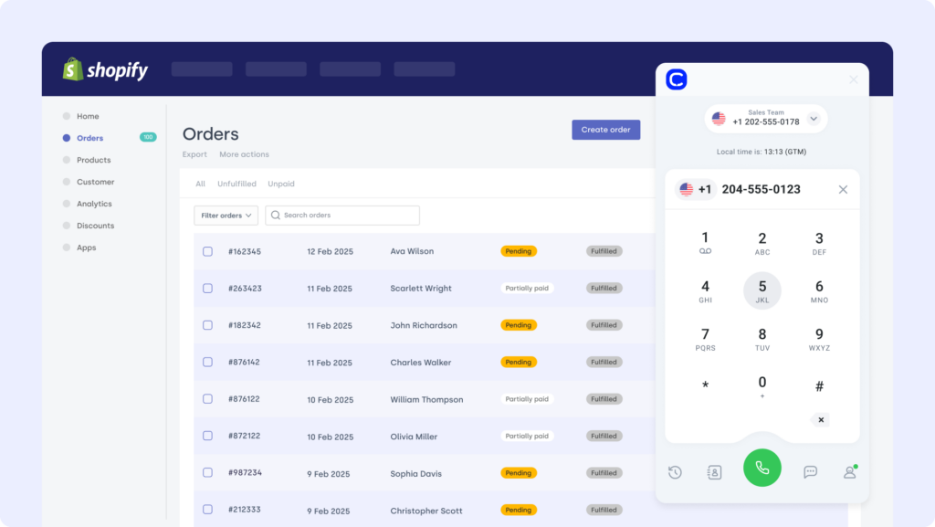 With CloudTalk’s Shopify calling integration, your sales, support, and retention teams gain real-time context for every conversation. Reduce delays, improve personalization, and deliver better customer experiences—powered by data from your Shopify CRM integration.