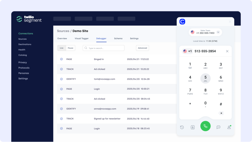 Vďaka integrácii s telefóniou Segment obohacuje CloudTalk vaše kľúče Segment Personas o živé údaje o udalostiach hovorov. Zlepšite segmentáciu publika a aktivujte inteligentnejšie pracovné postupy v rámci vašich marketingových a produktových nástrojov.