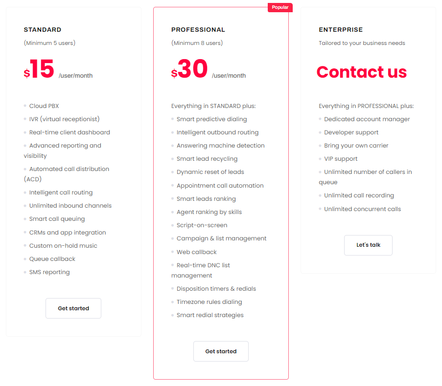 Features: 8×8 lacks features like call tagging for more efficient calling processes, call masking for protecting your personal information, and API for connecting with the tools you love. Automation tools like IVR, skills-based routing, or automated callback come only with high-tier plans. You have to pay extra to get a call recording.