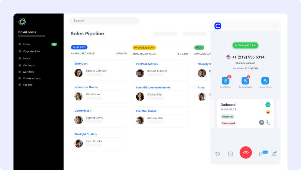 Close CRM VoIP-integrationen möjliggör Klicka-och-ring, samtalsloggning och automatiserade arbetsflöden, vilket håller dina CRM-data uppdaterade.